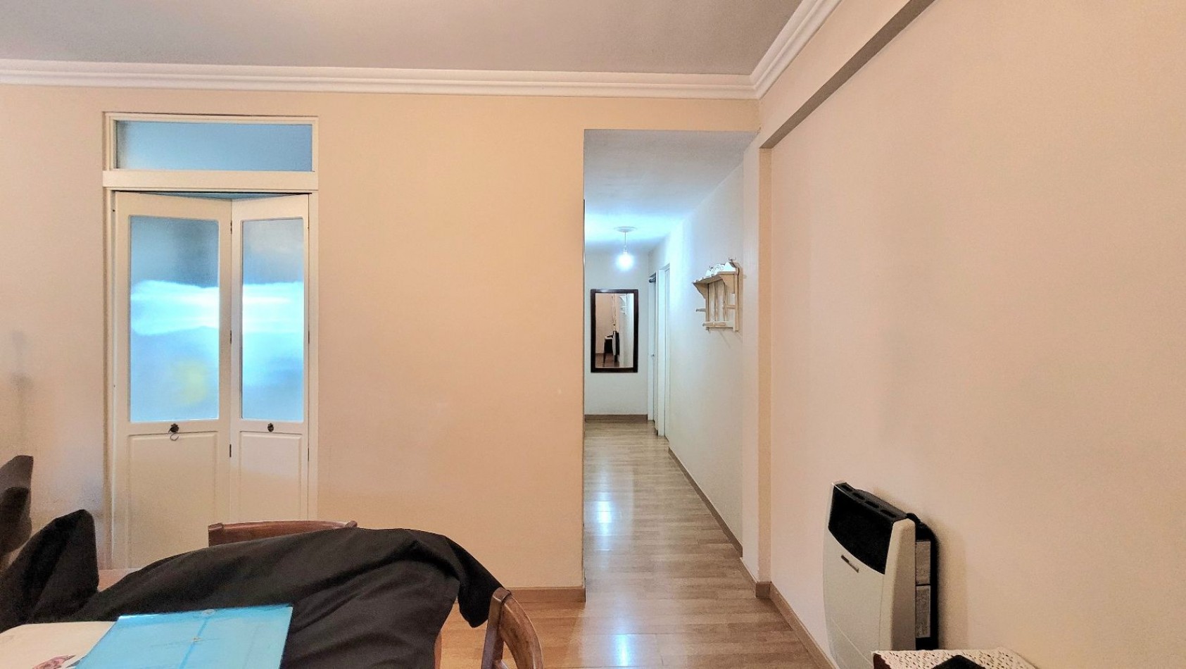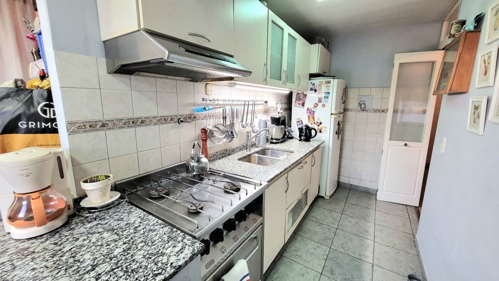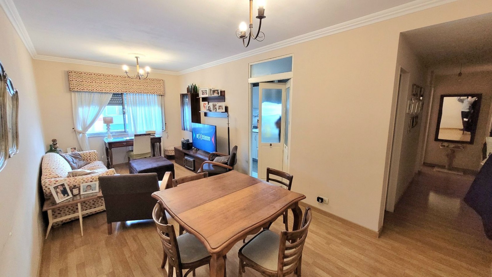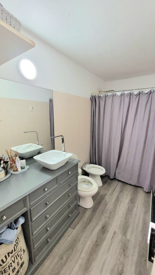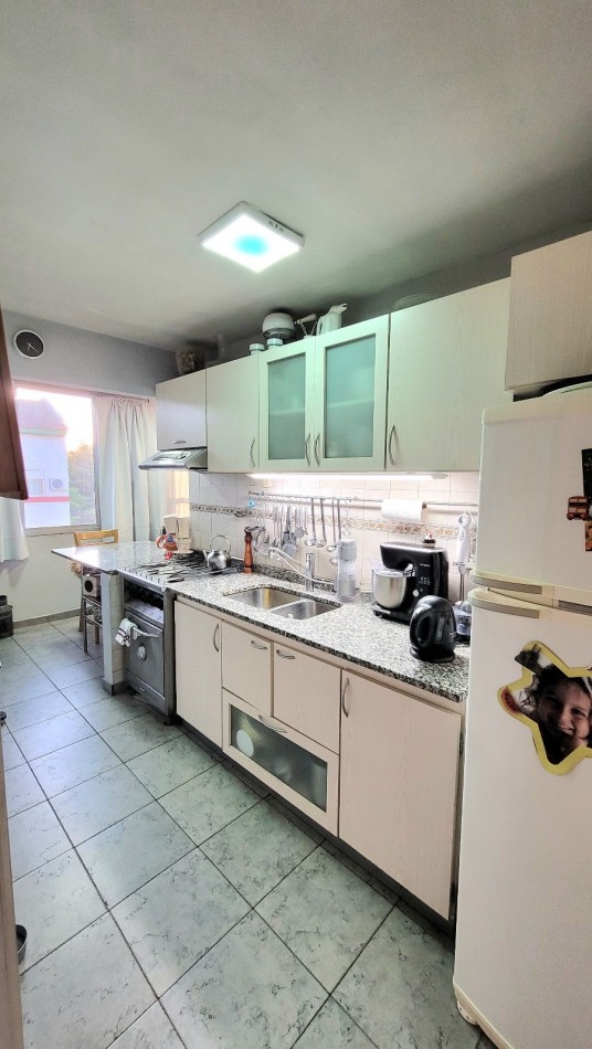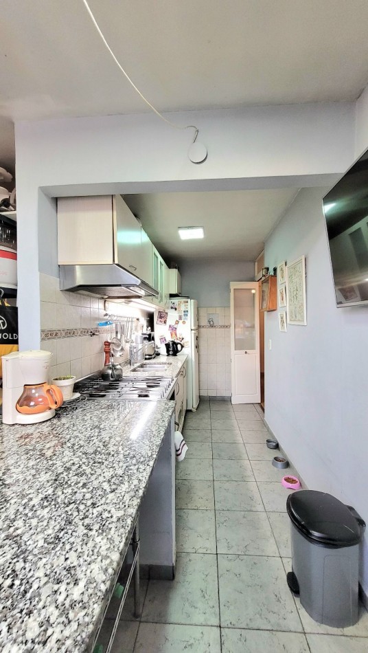 Living-comedor muy luminoso. Cocina independiente, equipada con bajo mesada, alacenas y barra desayunadora.